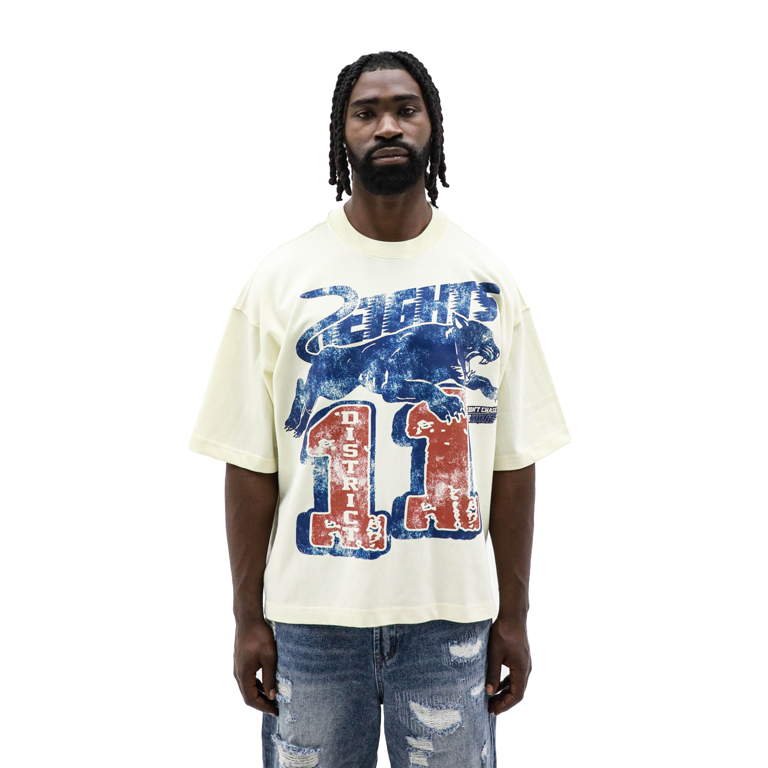The Don’t Chase tee is built on our Heights 9.0 oz heavyweight 100% cotton cut & sew base, finished with a distressed hand-drawn graphic by our artist. Varsity-inspired artwork brings that worn-in, legacy feel—like something pulled from an old locker room wall, reworked for the street.
